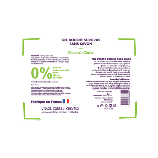 FREESENS - LOT DE 2 GELS DE DOUCHE SURGRAS SANS SAVON FLEUR DE COTON - 2X1L