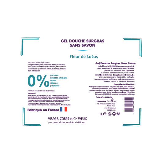 FREESENS - LOT DE 2 GELS DOUCHE SURGRAS SANS SAVON- FLEUR DE LOTUS-2X1L