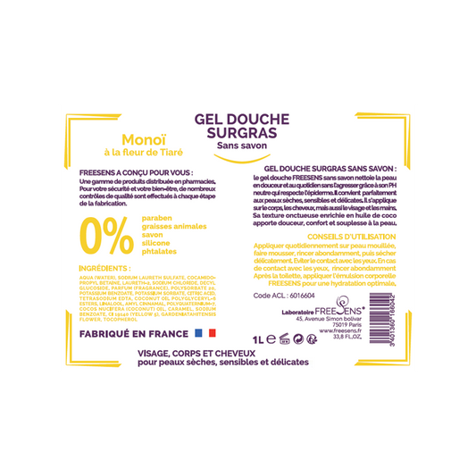 FREESENS - LOT DE 2 GELS DOUCHE SURGRAS SANS SAVON FLEUR DE MONOI - 2X1L