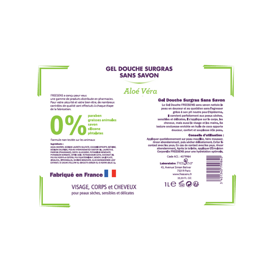 FREESENS - LOT DE 2 GELS DOUCHE SURGRAS SANS SAVON ALOE VERA BIO- 2X1L